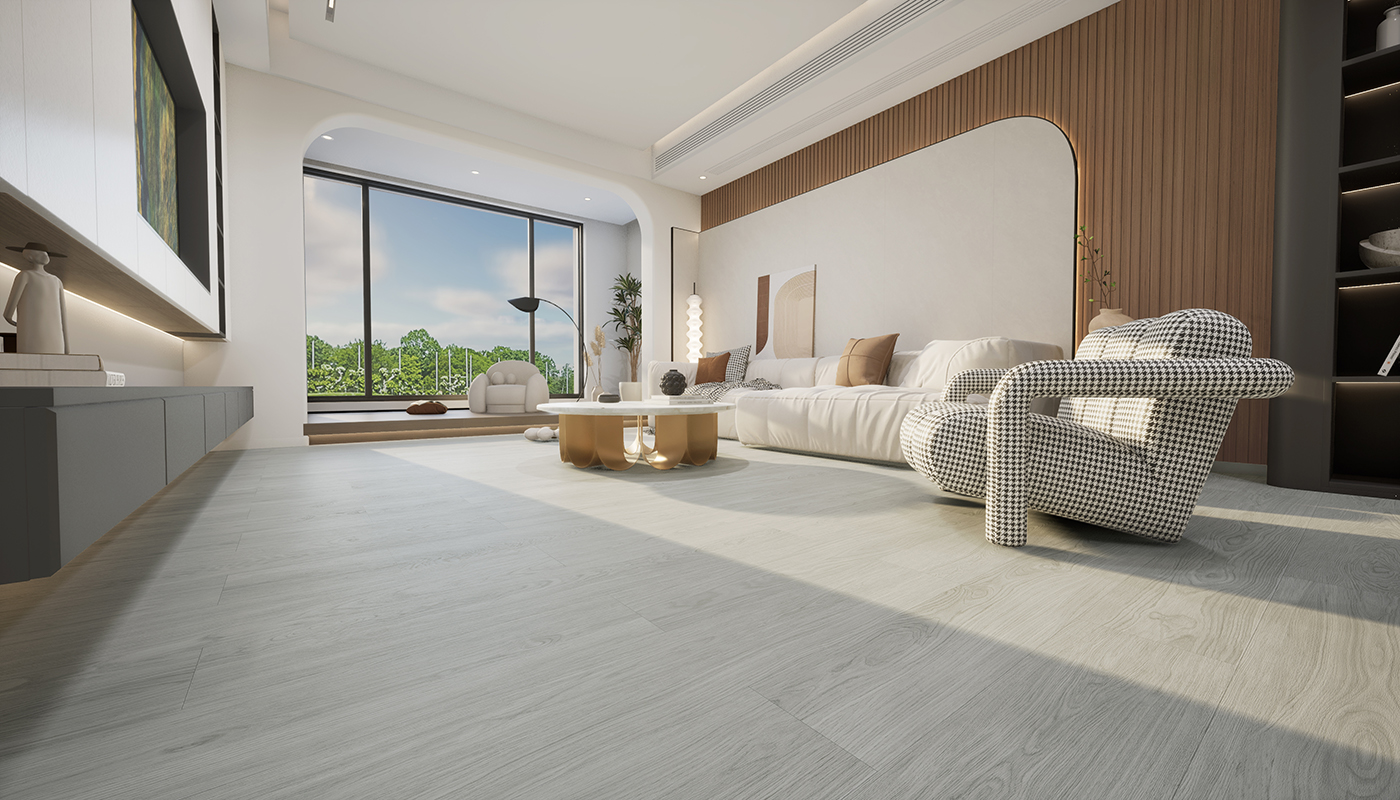沙灰色的色调,如同清晨的薄雾, 自然木纹元素与现代简约风格完美交融, 仿佛置身于清晨微光洒落的森林木屋, 让空间充满质朴交织的自然之美。